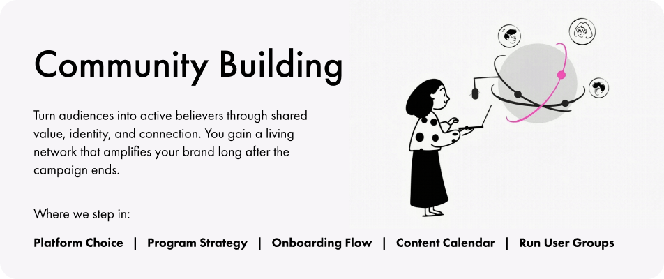 Turn audiences into active believers through shared value, identity, and connection. You gain a living network that amplifies your brand long after the campaign ends.